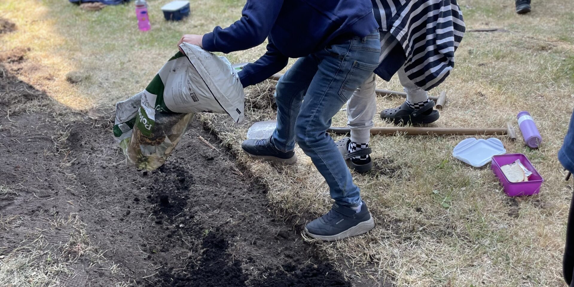 Die Klasse 2b hat fleißig geackert und ein kleines Blumenbeet angelegt.